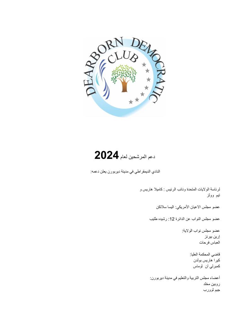 2024 Endorsements – English and Arabic Posted byttrimbleOctober 16, 2024November 11, 2024Posted inUncategorized Please feel free to forward this Arabic version of our club endorsements. The English version is at the bottom of the post. Share this: Click to share on X (Opens in new window) X Click to share on Facebook (Opens in new window) Facebook Like Loading... Related